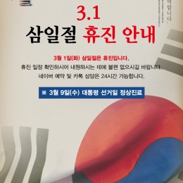 내 집 앞의 작은 서울대치과병원, 서울바른훈치과입니다^^ 추위가 막판 기승을 부리고 있는 가운데, 봄의 시작을 알리는 입춘이 지났습니다. 모두 환절기 건강하시길 훈치과가 바라겠습니다! 저희 서울바른훈치과 3월 휴진 안내드리오니, 내원예약에 참고하시길 바랍니다. 3월 1일(수) 삼일절 : 휴진 네이버 예약 및 카톡 상담은 24시간 가능합니다 :)