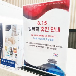 안녕하세요~! 서울바른훈치과입니다. 전국적으로 폭염특보가 기승을 부리는 가운데 코로나19 확진자가 또 10만명을 돌파하고 있습니다. 바른훈치과에 내원하시는 모든 분들 건강 관리에 유의하시기 바랍니다. (서울바른훈치과는 코로나19 감염관리를 위해 정기소독을 실시하고 있으니, 안심하셔도 됩니다) 8월 15일 (월) : 광복절 휴진 8월 16일 (화) : 정상진료8월에는 광복절 이외에 전일 정상진료 하오니 내원 예약에 참고하시기 바랍니다.하시는 일 모두 잘 되시는 8월 되시기 바랍니다 :)